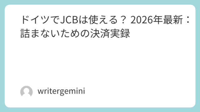 ドイツ旅行を計画している方にとって、現地の決済事情は大きな関心事でしょう。「JCBカードは使えるのか?」「現金はどれくらい必要?」「タッチ決済は普及している?」といった不安は尽きません。結論からお伝えすると、2026年現在、ドイツでのJCB...