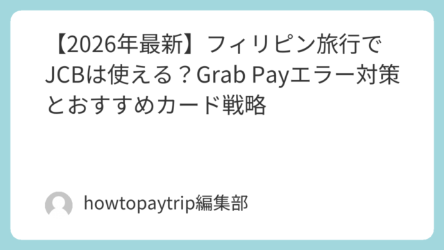 フィリピンへの旅行を計画する際、最も気になるのが「JCBカードがどこまで使えるか」と、移動の要である「Grabの決済エラー」ではないでしょうか。2026年現在、フィリピンのキャッシュレス事情は急速に進化していますが、旅行者特有の注意点も存在...