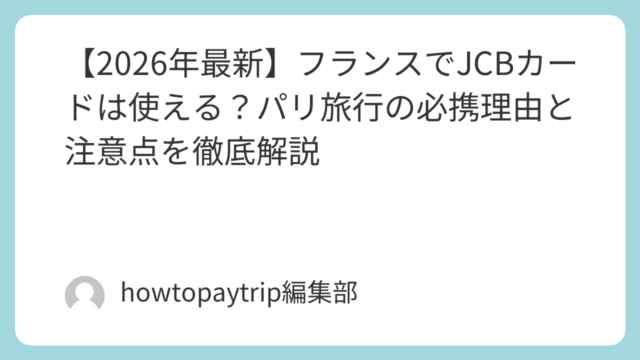 フランスは世界有数のキャッシュレス先進国ですが、日本発のブランドであるJCBカードがどこまで通用するかは旅行者にとって重要な関心事です。本記事では、2026年現在のフランスにおけるJCBカードの普及状況や、パリ旅行を格安・快適にする優待情報...