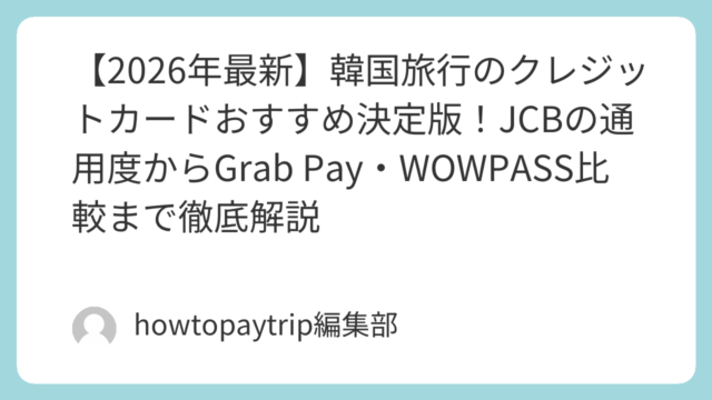 韓国は世界有数のキャッシュレス社会であり、2026年現在、決済比率は99%を超えています。旅行者が快適に過ごすためには、クレジットカードの選択が極めて重要です。本記事では、現地でのJCB利用状況や、エラーが懸念されるGrab Payの代替案...