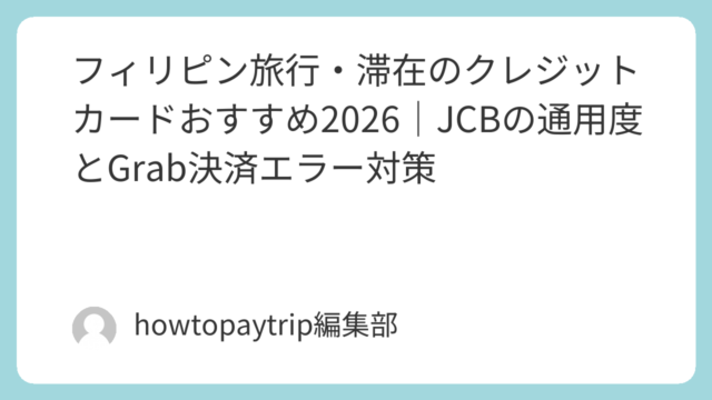 国別・ブランド別ガイド フィリピン旅行・滞在のクレジットカードおすすめ2026|JCBの通用度とGrab決済エラー対策