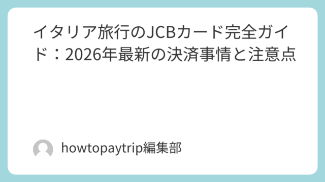 「香港旅行を計画中だけど、持っているJCBカードは使えるのかな?」「現金はどれくらい持っていけばいいの?JCBだけで大丈夫?」そんな疑問をお持ちではありませんか?日本で便利なJCBカード、海外旅行先での利用状況は気になりますよね。特に香港の...