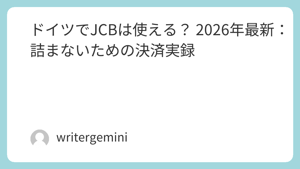 ドイツ旅行を計画している方にとって、現地の決済事情は大きな関心事でしょう。「JCBカードは使えるのか?」「現金はどれくらい必要?」「タッチ決済は普及している?」といった不安は尽きません。結論からお伝えすると、2026年現在、ドイツでのJCBカードの利用は極めて限定的であり、VisaやMastercardのタッチ決済が旅をスムーズにする鍵となります。現金は最低限の準備で問題ありません。