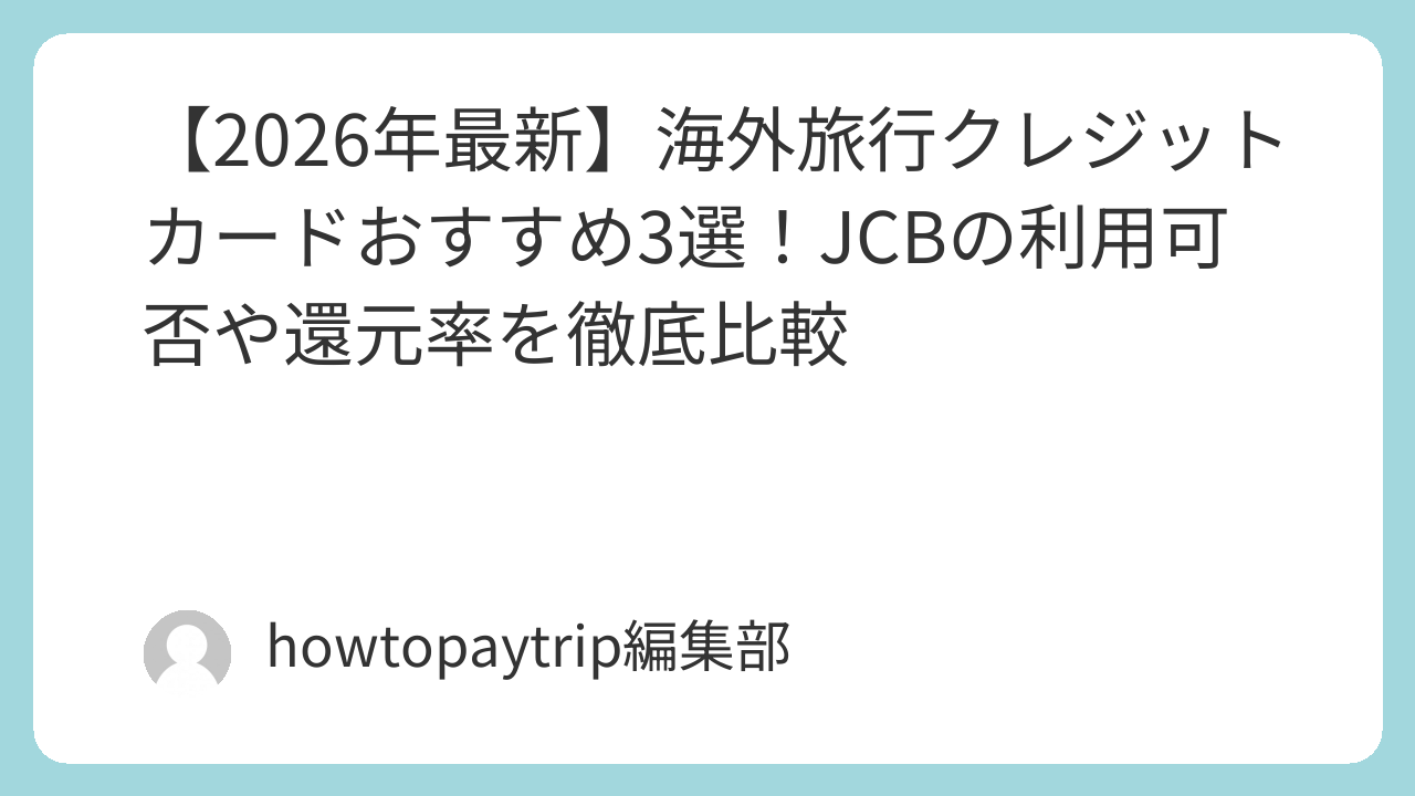 2026年の海外旅行を支えるカード「最強の組み合わせ」