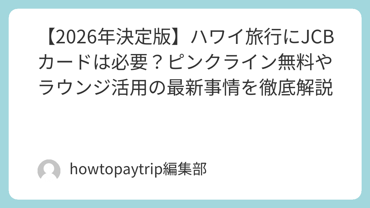 ハワイ(オアフ島・ホノルル)は、世界で最もJCBカードが「得をする」旅行先として知られています。多くの日本人が訪れる場所だからこそ、JCB独自のサービスや優待が他国とは比較にならないほど充実しています。一方で、2026年現在、一部のサービス拠点に変動があるなど、最新情報を押さえておく必要があります。本記事では、ハワイでのJCB決済の実態から、移動、休憩、優待特典まで、事実に基づいた最新情報を網羅的に解説します。