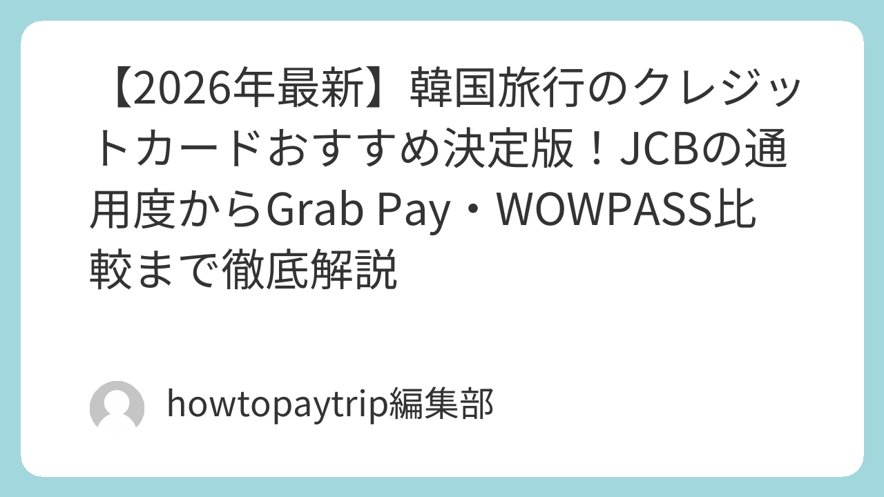 韓国は世界有数のキャッシュレス社会であり、2026年現在、決済比率は99%を超えています。旅行者が快適に過ごすためには、クレジットカードの選択が極めて重要です。本記事では、現地でのJCB利用状況や、エラーが懸念されるGrab Payの代替案、そして最新のプリペイドカード事情まで、一次ソースに基づいた正確な情報を網羅的に解説します。