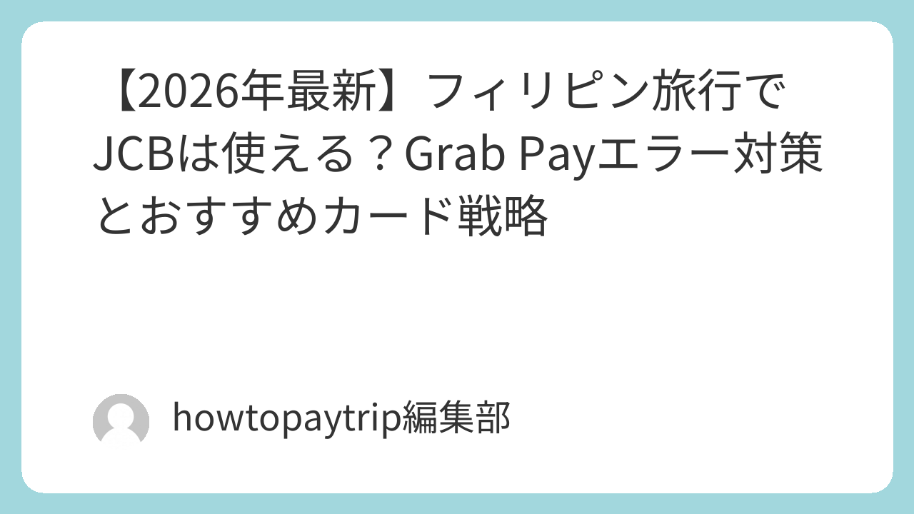 フィリピンへの旅行を計画する際、最も気になるのが「JCBカードがどこまで使えるか」と、移動の要である「Grabの決済エラー」ではないでしょうか。2026年現在、フィリピンのキャッシュレス事情は急速に進化していますが、旅行者特有の注意点も存在します。