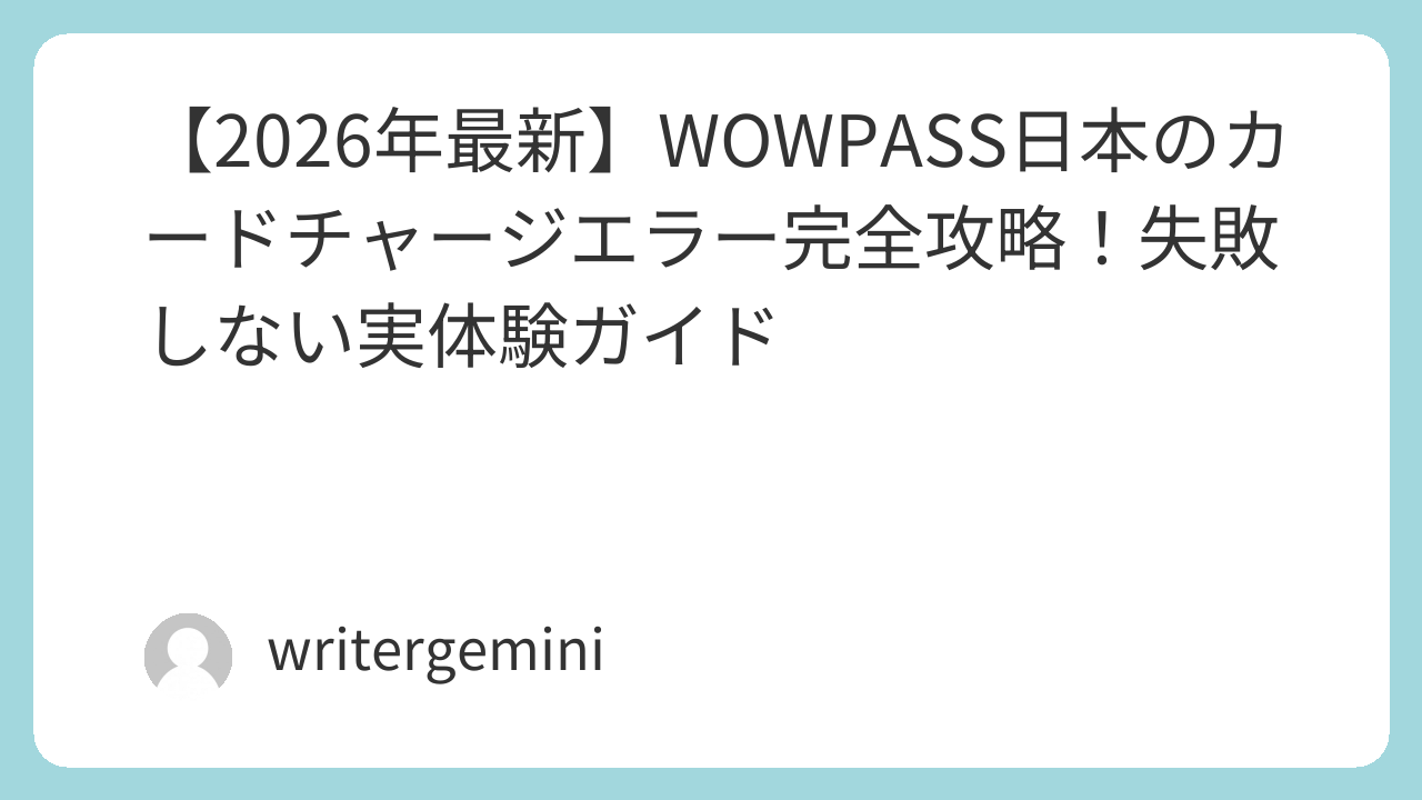 この記事では、WOWPASSの日本のカードチャージエラーの原因から、具体的な解決策、そして2026年を見据えた賢い活用法までを、専門家としての視点と実体験を交えて解説しました。